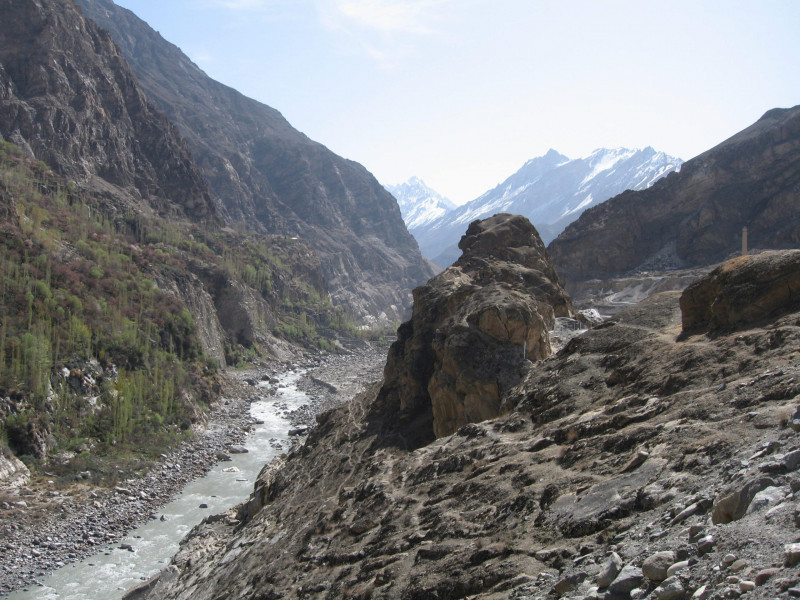 I went on a fantastic trip to Pakistan 10 years ago and spent almost a week up in the Karakoram Mountains, in the North East near the Chinese border. The scenery was truly breath-taking. It was Springtime and the palest pink apricot blossom filled the air with a delicate scent, the gnarled old trees stood out against the vivid blue-grey of the snow-capped mountains above the Indus Valley. Our hotel was at 4,500 thousand feet, half as high again as Eryri (Snowdon) and there were few tourists from abroad apart from coachloads of Japanese, come to visit the flowers.