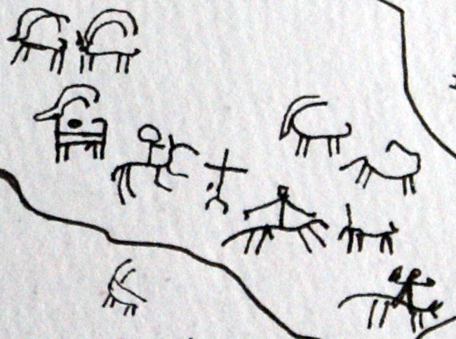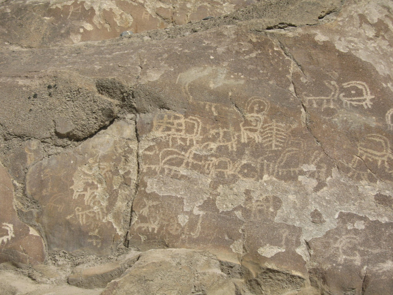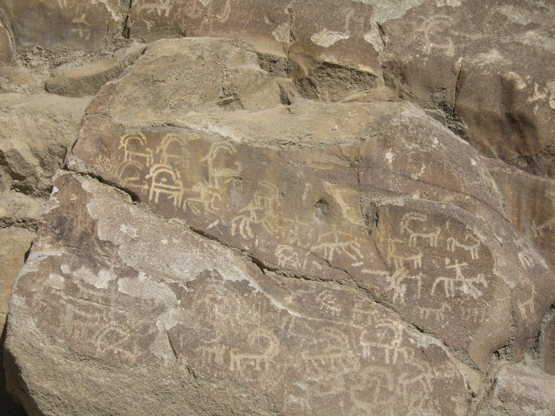 One day we set off in some jeeps to drive further up the Karakoram Highway. It’s a precarious road, we drove through tunnels in glaciers, landslides and waterfalls. Some of the highest mountains in the world are here including Chogori (K2), Rakaposhi and Nanga Parbat. Our driver slewed to a halt and shouted to everyone to get out, which was a bit alarming as we were many miles into the wilderness. But then we saw the sign for a sacred site. Huge boulders near the side of the road were covered with ancient petroglyphs, small engravings in the rock, mainly animals, ibexes and horses, with the occasional human figure, painstakingly picked away by artists who carved the designs using stone tools on stone; meticulous work, so fine, so dedicated.