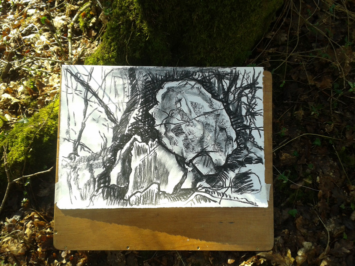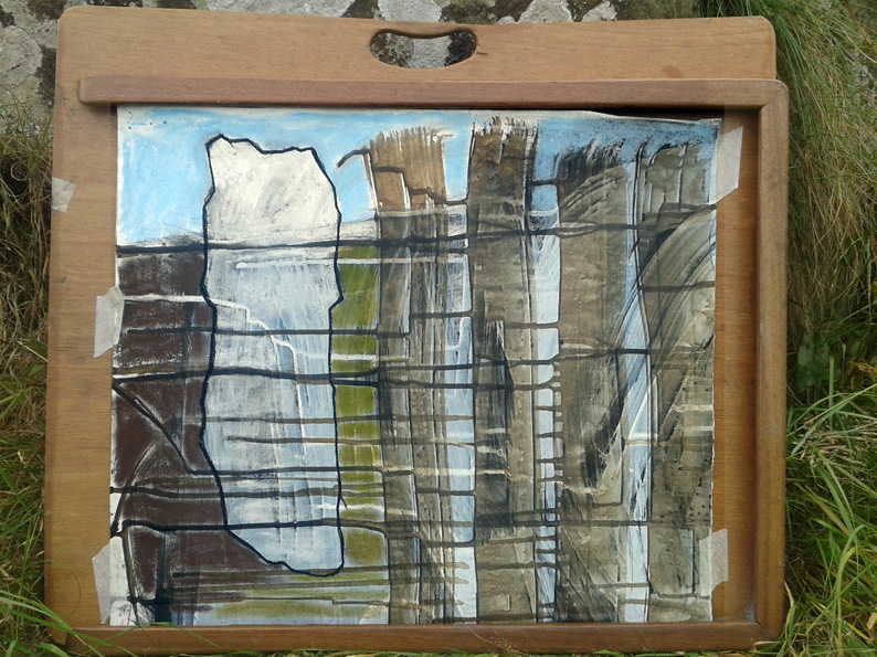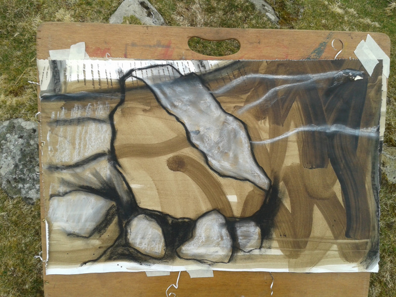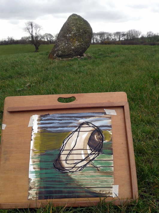 There are some stones on farmland, we always asked permission from farmers and followed the countryside code and in the majority of cases we were well received. Working en plein air is really good exercise, artistically and physically.