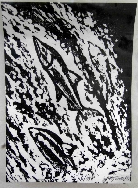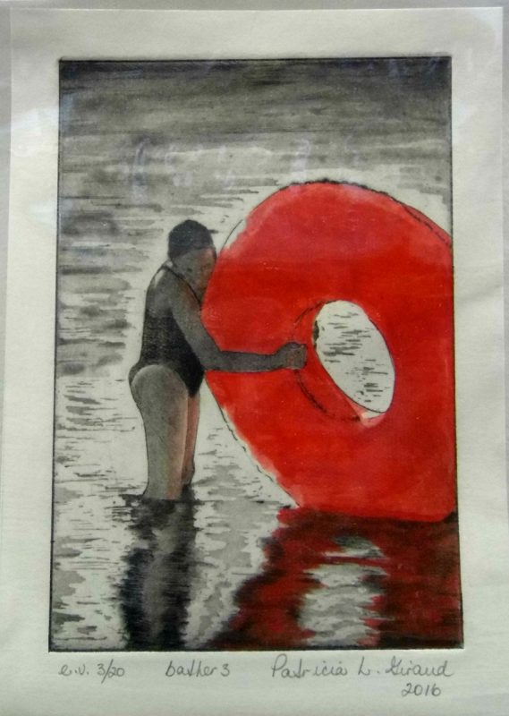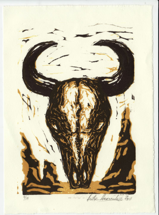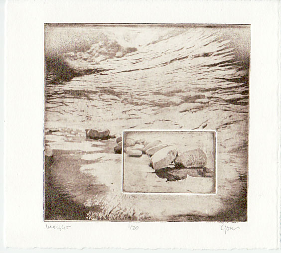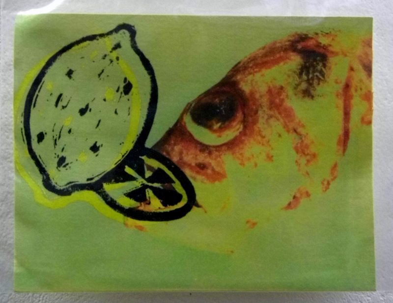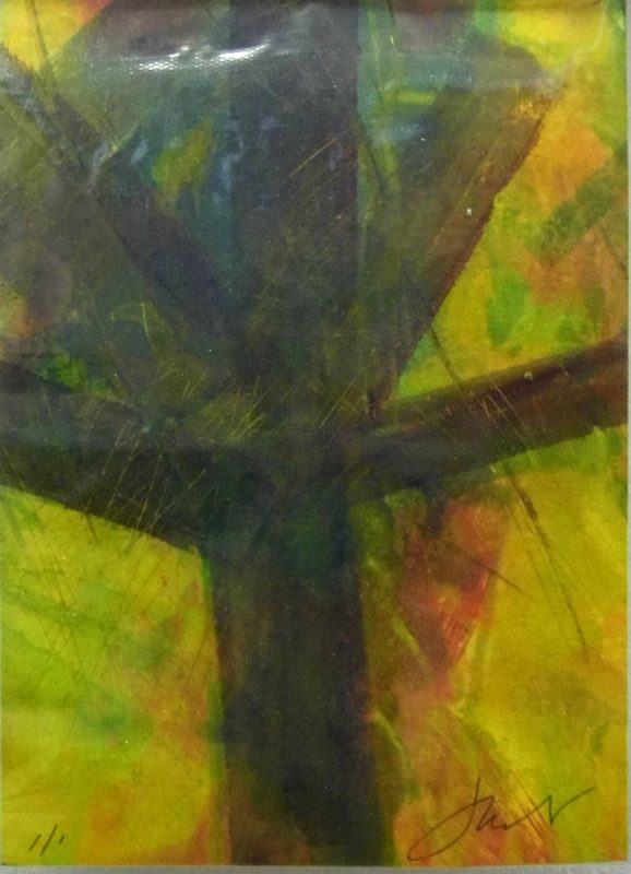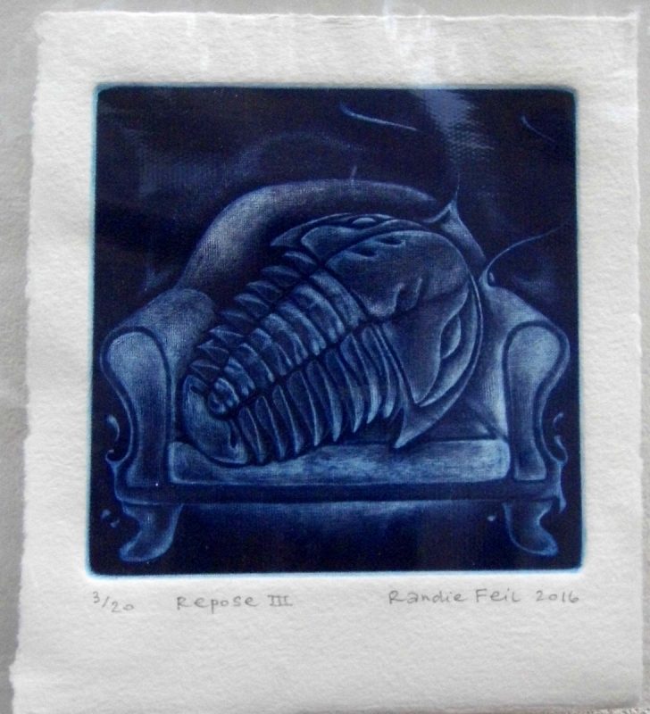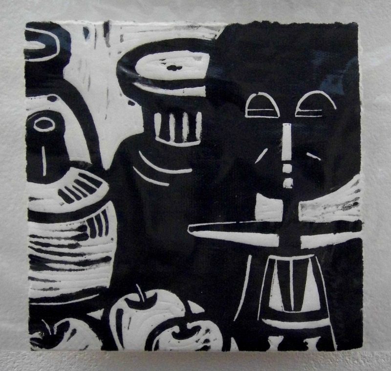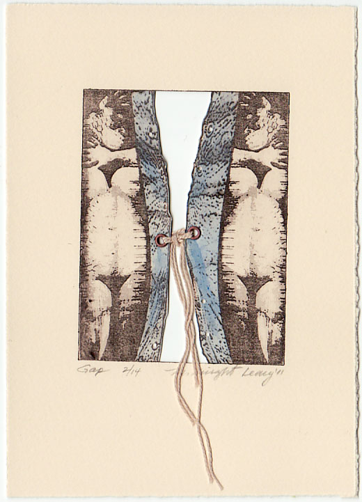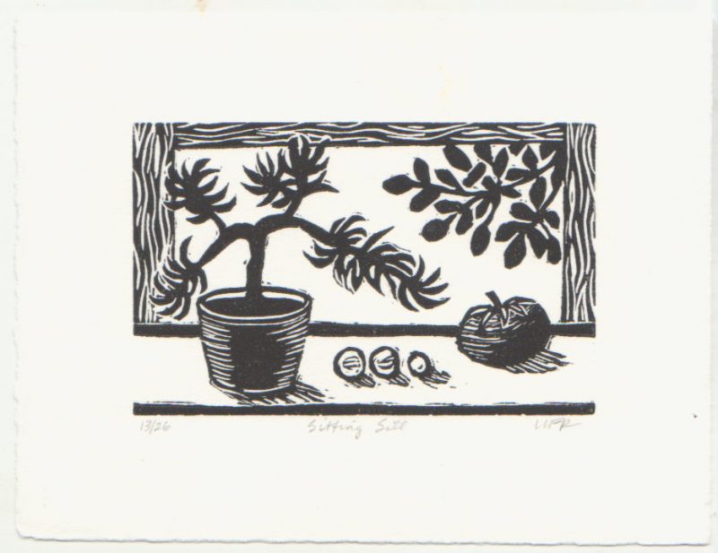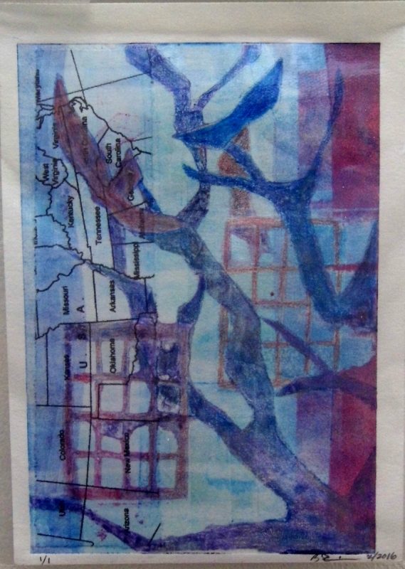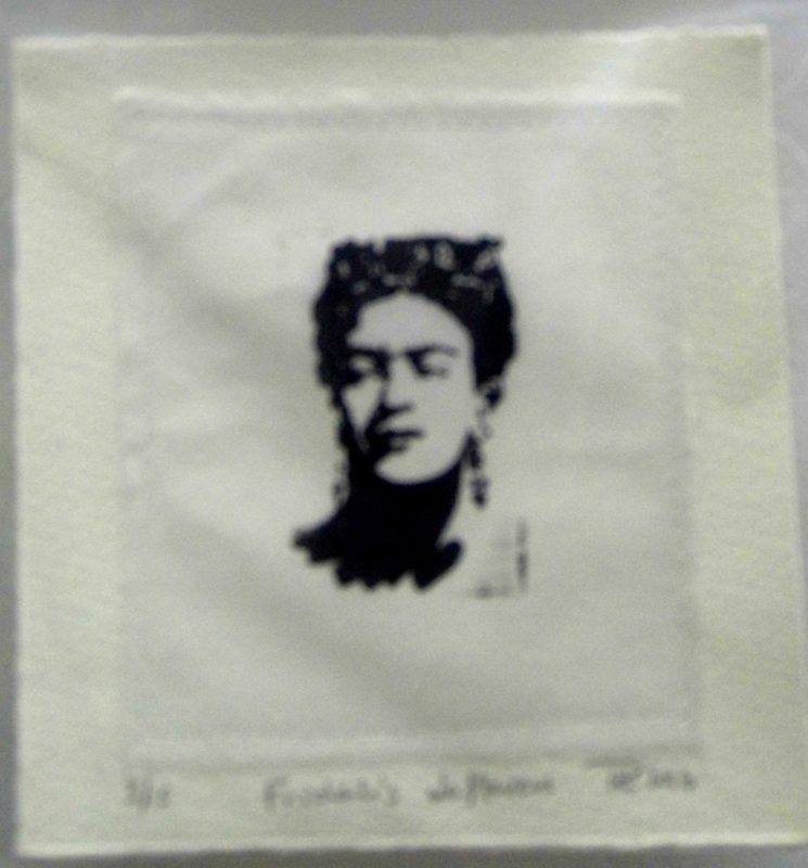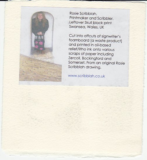 An invitation went out to fellow printmakers to participate in a print exchange to use all those lovely leftover scraps to create a small edition of prints. Artists submit an edition of 15 prints of any size up to and NO LARGER than 5 inches by 7 inches and receive a dozen prints in return. Two prints are reserved for travelling exhibition, one print reserved for silent auction to support Idaho Relief Task Force.